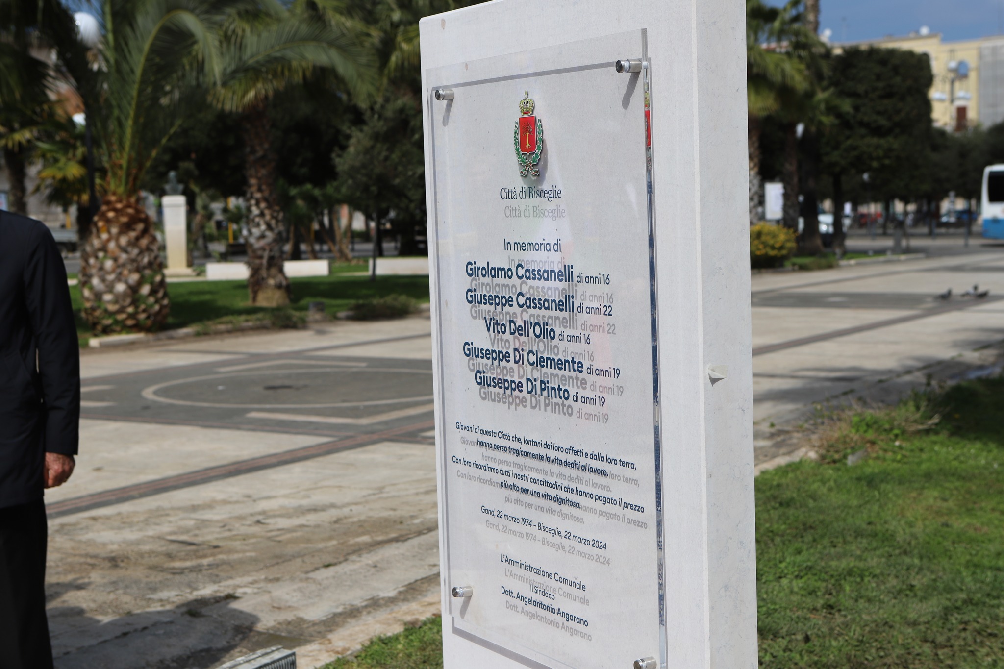 A distanza di 52 anni dalla tragedia di Gand, la Città di Bisceglie rinnova il proprio ricordo in memoria di Girolamo Cassanelli, Giuseppe Cassanelli, Vito Dell’Olio, Giuseppe Di Clemente e Giuseppe Di Pinto, i cinque giovani concittadini che persero la vita nella notte del 22 marzo 1974 in un incendio divampato nel ristorante in cui lavoravano, in Belgio.